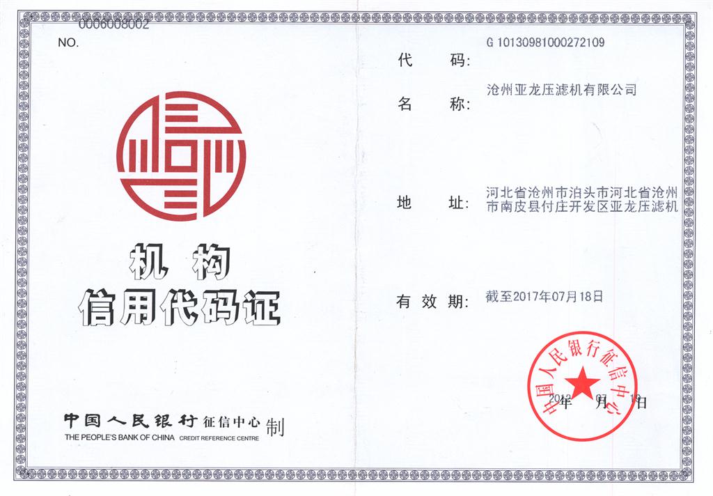 機(jī)構(gòu)信用代碼證-