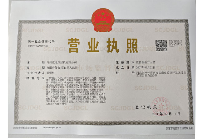 公司名稱:滄州亞龍壓濾機有限公司 公司地址:河北省南皮縣付莊工業開發區 電話:0317-8189922 傳真:0317-8189923 手機:13831723798 網址:
